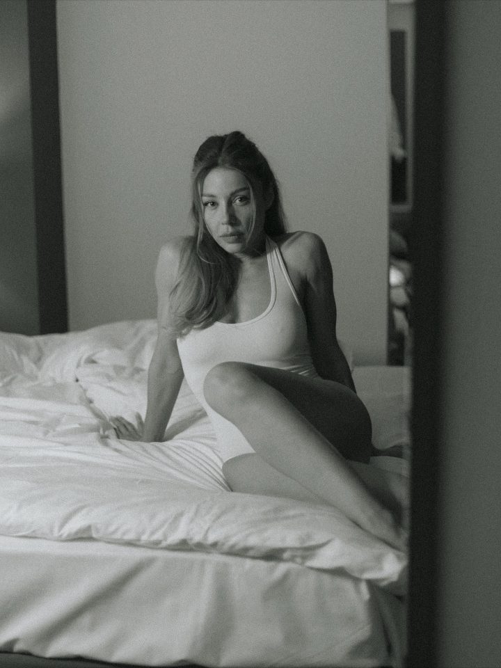 На нових світлинах, якими зірка поділилася в Instagram, Тіна позує у білому боді, загорнувшись у м’яку ковдру. Атмосфера фотосету передає домашній затишок, а тепле світло створює відчуття гармонії й кохання.
