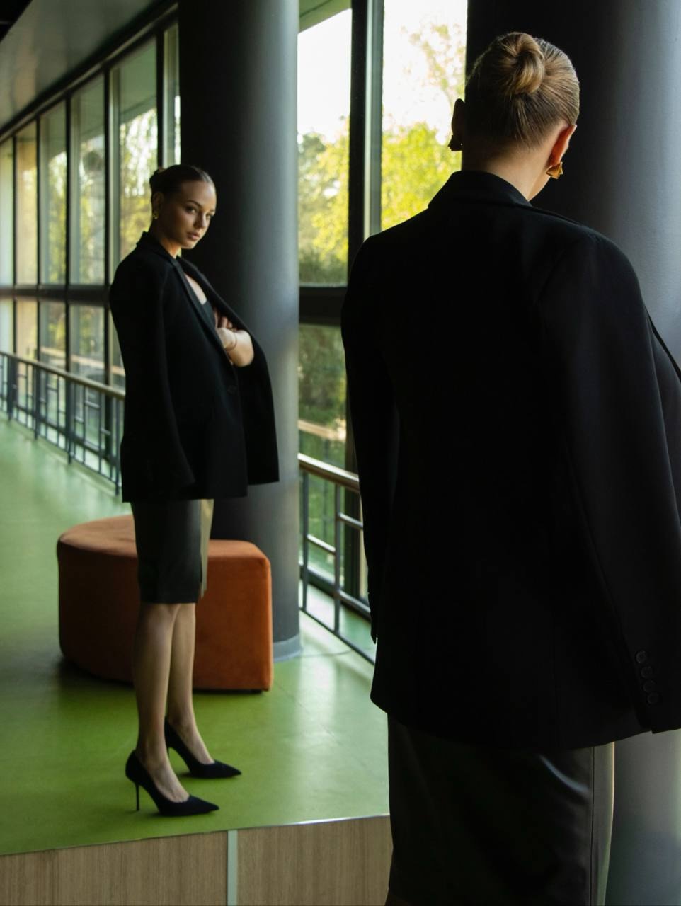 На знімках Білодід позує в мінімалістичних луках, що підкреслюють її атлетичну статуру: облягаючі сукні з відкритими плечима, oversize-блейзери з брючними комплектами та аксесуари, що додають нотки урбаністики. Фон — урбаністичні пейзажі Києва, де Дар’я, одягнена в спортивно-елегантні образи від українських дизайнерів, демонструє, як поєднувати тренування з красою. Її погляд — впевнений, посмішка — загадкова, а рухи — граціозні, як на татамі.