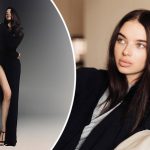 Влад обрав класичний чорний костюм-трійку з білою сорочкою та метеликом, доповнивши образ тростиною — аксесуаром, що додає статусності та загадковості. Ліліана, тримаючись за руку чоловіка, постала в білій сукні з бахромою та паєтками, довгим намистом, тонкою пов’язкою на лобі та хутряною накидкою — ідеальний втілення джазової епохи. Фон — сонячний Маямі, де пара з 7-річним сином Леоном оселилася після еміграції.
