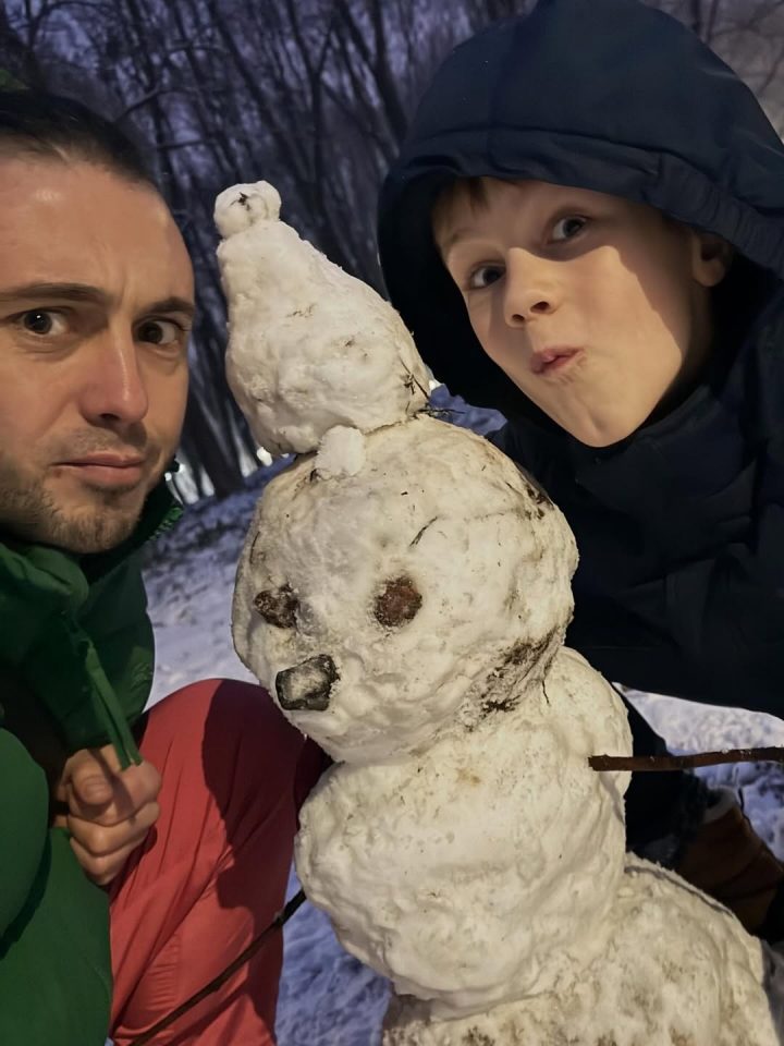У своєму Instagram музикант опублікував фото з зимової прогулянки у Сирецькому парку. Саме того дня Київ уперше за сезон накрив сніг, тож батько й син вирішили не втрачати нагоди та влаштували справжні зимові забави — зі сніговиком і гарним настроєм.