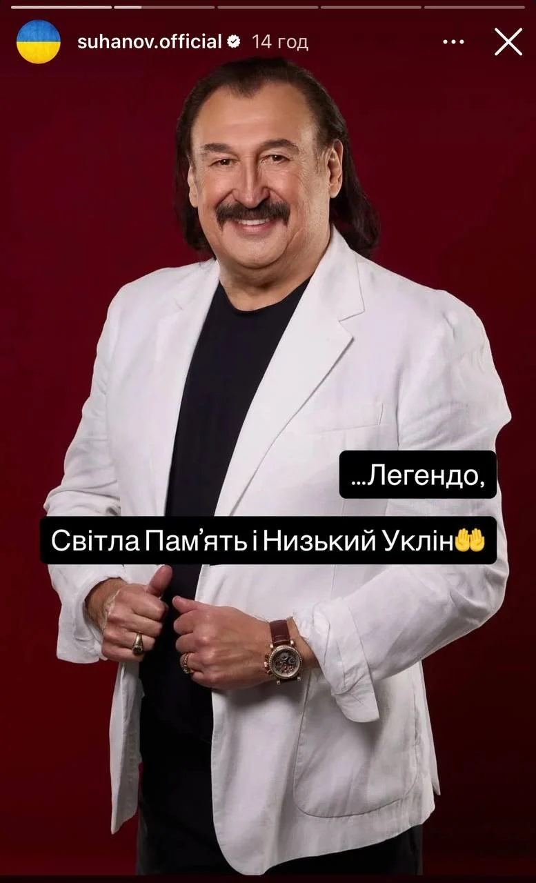 «Степане… Світла пам’ять, друже… Серце стискається від болю і досі не віриться, що я пишу ці слова. Неймовірний артист, світла людина… Твій голос і твої пісні — це частина нашого життя, частина коду України, вони назавжди з нами, у наших серцях! Щирі співчуття рідним. Спочивай з миром…»
