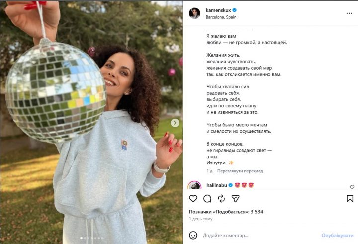 Читайте також: Олена-Христина Лебідь вразила креативною “ялинкою” та романтичними кадрами з Розенком у Львові