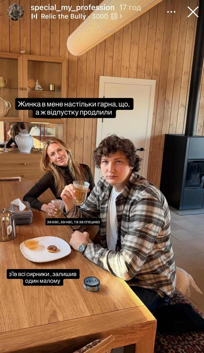 На знімку Леся та Дмитро проводять час разом за трапезою, насолоджуючись домашніми сирничками та простими моментами щастя. Проте найбільше уваги привернув підпис до фото. З гумором і любов’ю Дмитро написав: