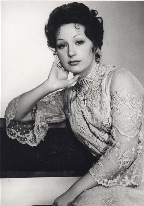 На фото Пугачова постає зовсім іншою, ніж її звикли бачити мільйони шанувальників пізніше. Вишукане мереживне плаття підкреслює її витонченість, акуратно вкладене темне волосся надає образу аристократичності, а стриманий макіяж відкриває природну красу й глибокий, проникливий погляд. У цій позі — спокій і впевненість, ніби вона вже знає: попереду — велика доля.