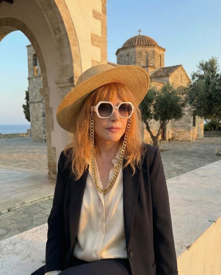 Стильна 76-річна Алла Пугачова прогулялася вулицями Лімасола, продемонструвавши бездоганний смак та неймовірну енергію. Співачка обрала для прогулянки класичний, але сучасний образ: світлу шовкову блузу, чорний жакет та штани, які доповнила широким солом’яним капелюхом і масивними сонцезахисними окулярами на стильному золотому ланцюжку.