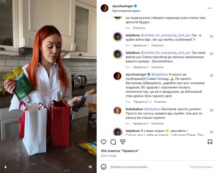 Артистка відреагувала на підозри в Instagram, відповівши на коментар під одним зі своїх дописів. Один із користувачів припустив, що вона могла вплинути на ситуацію з блогером. У відповідь Тополя категорично заперечила будь-які звинувачення та нагадала про реалії життя під час воєнного стану.