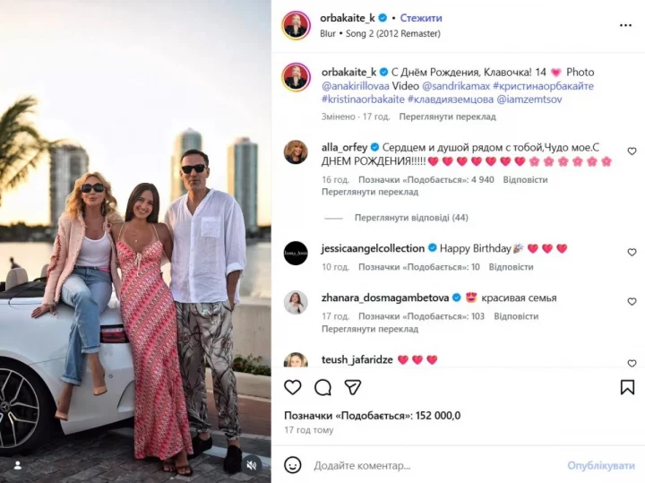 На честь дня народження Крістіна Орбакайте опублікувала в Instagram зворушливе сімейне відео, на якому позувала разом із чоловіком і донькою. Зі святом онуку привітала й сама Алла Пугачова. У коментарях Примадонна написала: «Серцем і душею поруч з тобою, диво моє! З Днем народження».
