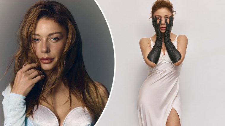 Для зйомки Тіна обрала вишукану довгу сукню-комбінацію, яка м’яко облягала її силует. Особливої пікантності та сучасності аутфіту додали високі шкіряні рукавички, що стали головним акцентом образу. Виконавиця доповнила вигляд лаконічними чорними босоніжками, а волосся зібрала в акуратний пучок, відкривши обличчя з ніжним нюдовим макіяжем.