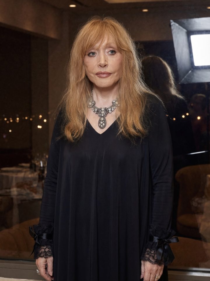 Для святкового вечора Алла Борисівна обрала безпрограшний варіант — розкішну чорну вечірню сукню до підлоги. Вбрання з V-подібним вирізом та ефектними мереживними вставками на манжетах підкреслило її жіночність та елегантність.