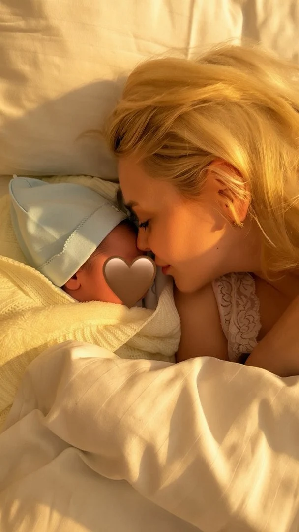 Аліна виглядає щасливою і спокійною. Перші фото з новонародженим синочком і чоловіком вже зібрали тисячі теплих коментарів.