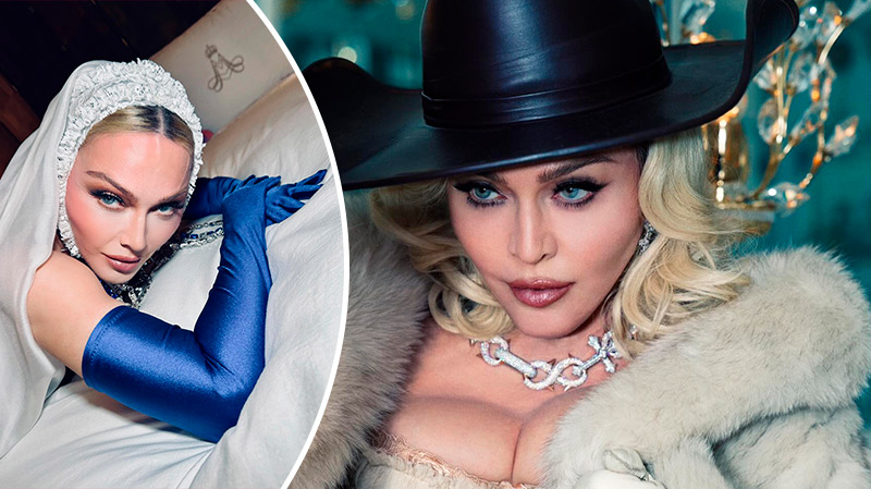 З оголеним бюстом, діамантами та Біблією: 65-річна Мадонна влаштувала пристрасну фотосесію у ліжку з гарячим мачо
