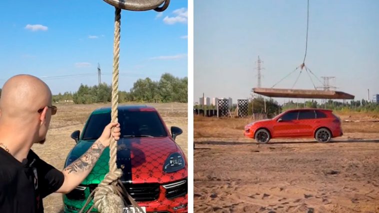 «А бідні останні гроші віддають на ЗСУ» — російськомовний блогер Денис Повєткін скинув бетонну плиту на свій Porsche заради чергового хайпу