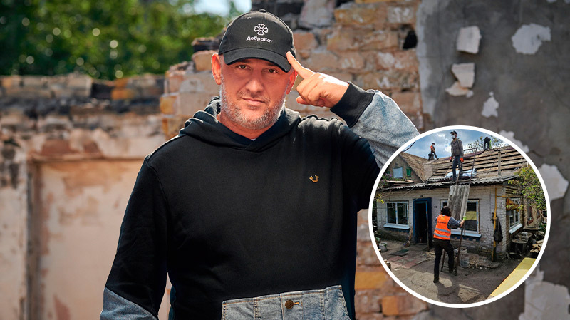 «Онук зараз на передовій» — репер Потап разом із батальйоном «Добробат» відбудовує пошкоджений будинок пенсіонерки