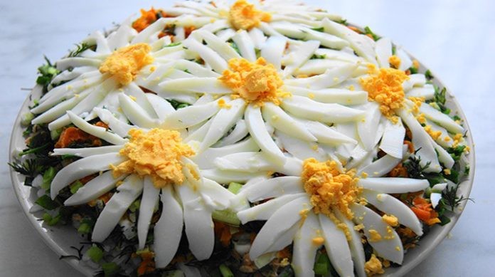 Листковий салат «Ромашкове поле» – яскравий та ніжний смак на вашому столі