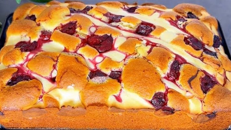 Мармуровий пиріг з вишнями – простий рецепт із доступних продуктів! Готується швидко, а смак неперевершений!