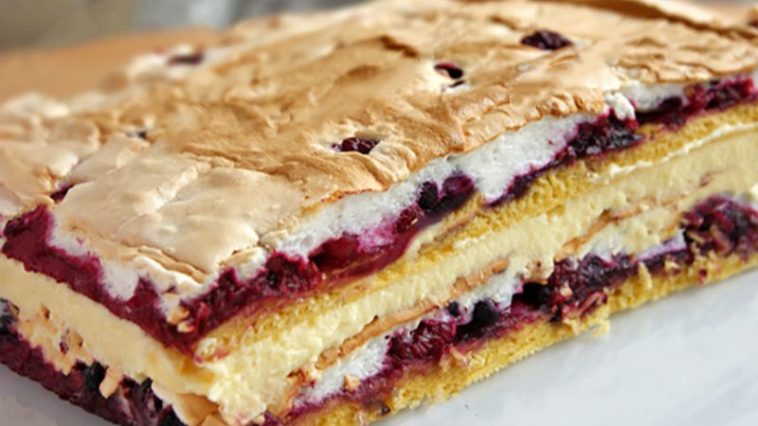 Дивовижний польський торт “Пані Валевська” із смородиновим кремом і горіховим безе