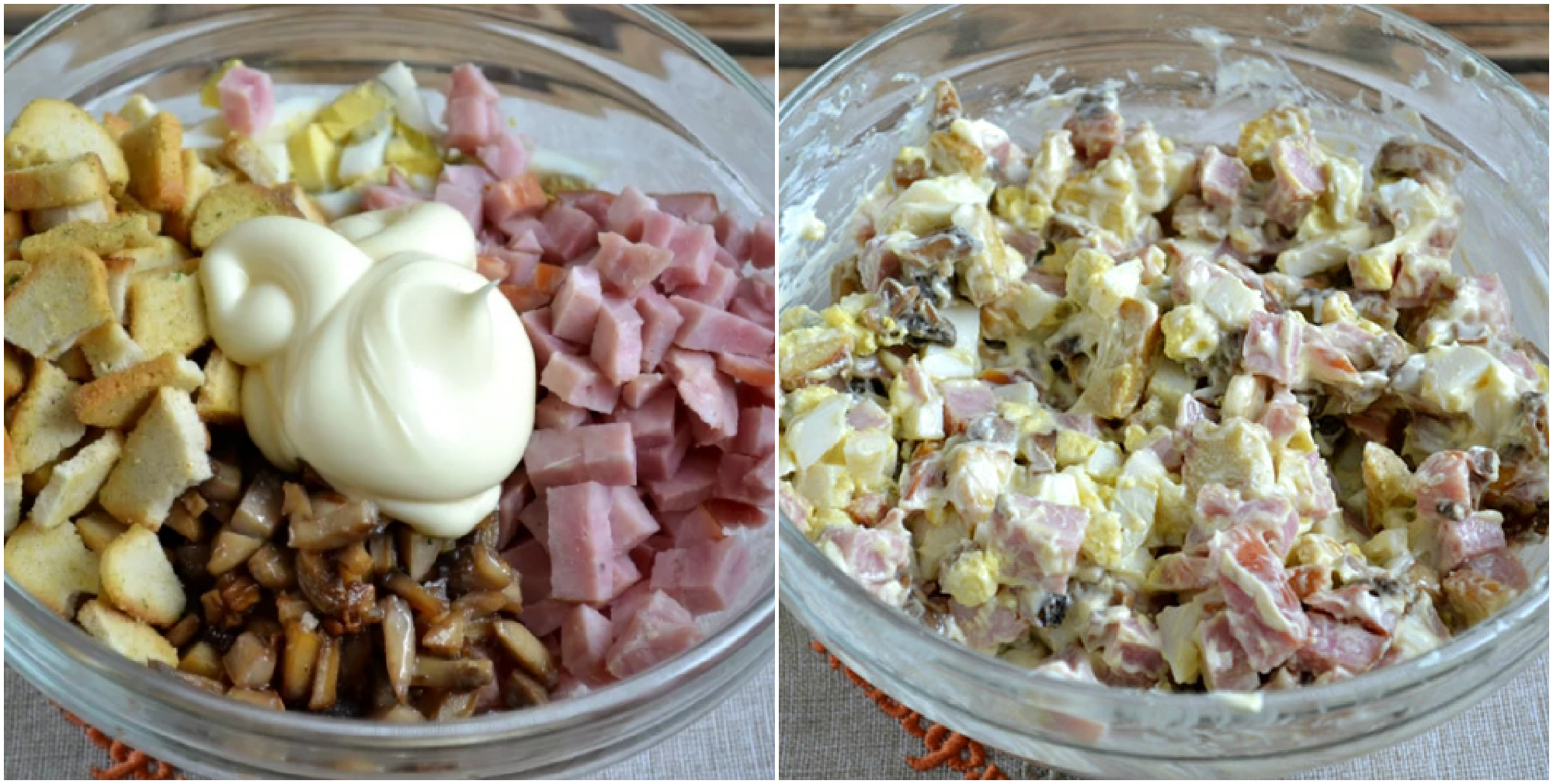 Неймовірно смачний та ситний салат з шинки та печериць: справжня знахідка для святкового столу