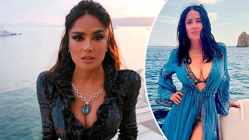 Грецька богиня серед людей: 57-річна Сальма Хайєк вразила формами в облягаючій сукні кольору слонової кістки